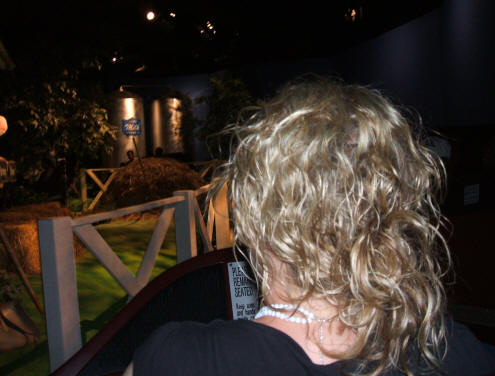 Sarah is riveted at the Hershey factory tour. She'd never seen singing cows before.